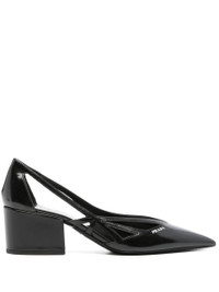 black calf leather smooth grain 55mm block heel cut-out detailing debossed logo to the side pointed toe branded leather insole rubber sole Heel 2,2 in / 5,5 cm Gender: Women Material: CALF LEATHER 100% Color: Black Made in: IT Product ID: 1I741N055F0002 *Import tax/duty will be calculated at checkout (If applicable)