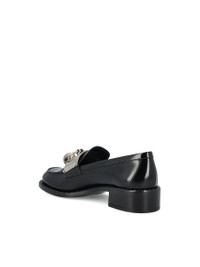 - Upper: 100% calfskin leather - Color: black and silver - One-piece rubber sole with branded logo - Heel height: 35 mm - Other details: metal ring applique on front - Made in Italy - Box included - Item number: 1D981NP39F0002 Gender: Women Material: 100%CALF Color: Black Made in: IT Product ID: 1D981NP39F0002_P25 *Import tax/duty will be calculated at checkout (If applicable)