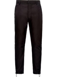 Black cropped baggy trousers from PRADA featuring belt loops, concealed front fastening, two side patch pockets, two rear patch pockets, enamel triangle logo and cropped leg. POSITIVELY CONSCIOUS: At least 50% of the main material of this product meets our conscious criteria. For example, it's either organic, recycled, upcycled or independently recognised as being better for the environment (such as linen, ramie, TENCEL™ etc.)..   Gender: Men Material: 100%RECYCLED POLYAMIDE Color: Black Made in: Imported Product ID: SPH66S2021WQ8 F0002 NERO *Import tax/duty will be calculated at checkout (If applicable)