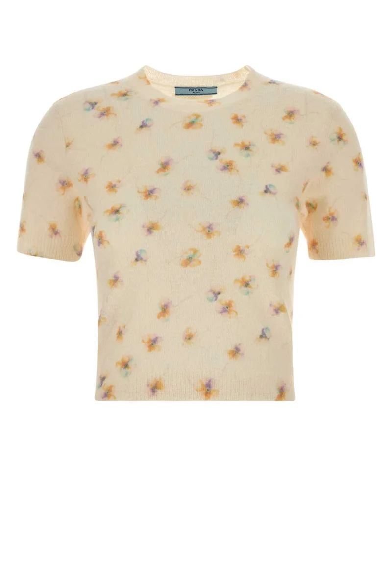 Floral print wool crew-neck sweater