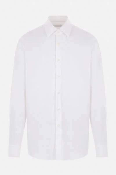 Prada's slim-fit shirt crafted in white stretch cotton poplin. It features classic collar, button closure, long sleeves with buttoned cuffs and curved hem. Gender: MEN Material: 75%COTTON 05%ELASTANE 20%RECYCLED POLYAMIDE-100%TROCHUS NILOTICUS Color: WHITE Made in: IT Product ID: UCM608SOOO10HTF0009 *Import tax/duty will be calculated at checkout (If applicable)