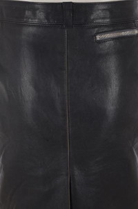 Prada's pencil skirt in vintage-effect leather featuring snap-button / double zip closure, belt loops, pockets on both sides and tight silhouette with back vent. Fully lined. Gender: Women Material: 100%CALF Color: BLACK Made in: IT Product ID: 51837S23113AKF0002 *Import tax/duty will be calculated at checkout (If applicable)