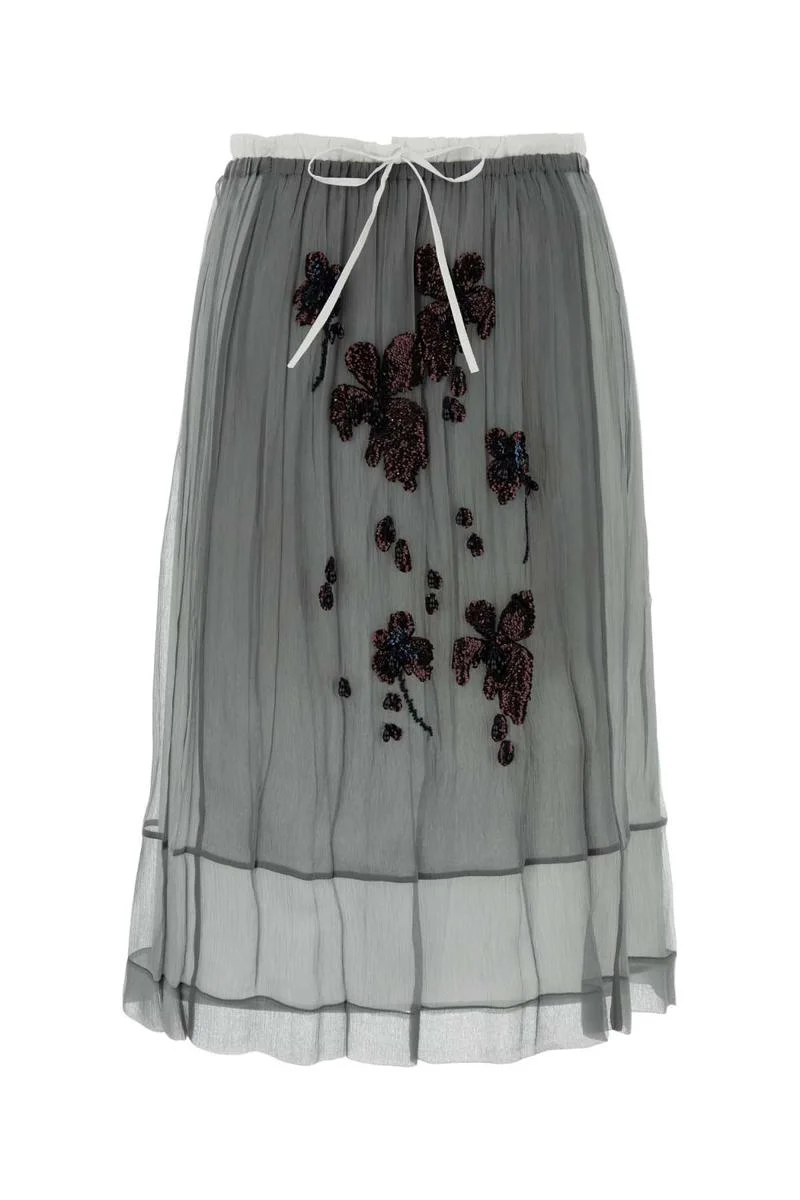 Embroidered chiffon midi-skirt