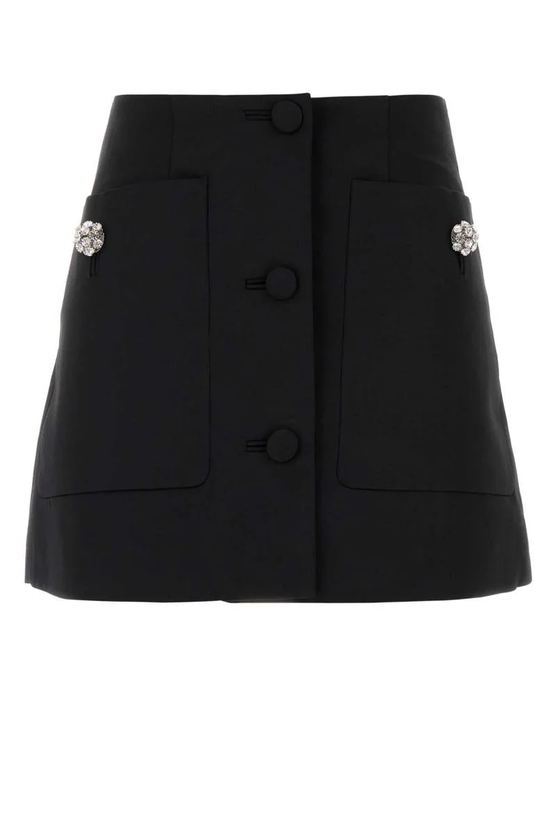 Black wool mini skirt Gender: Women Material: EXTERIOR: 100% VIRGIN WOOL LINING: 100% VISCOSE Color: Black Made in: Italy Product ID: P138XGSOOO477 F0002 *Import tax/duty will be calculated at checkout (If applicable)