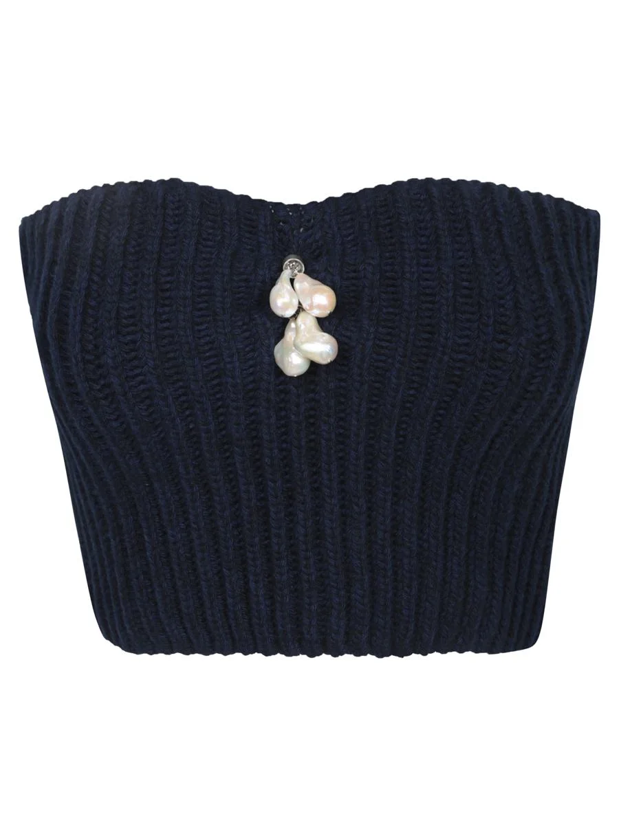 Embellished wool and cashmere crop top