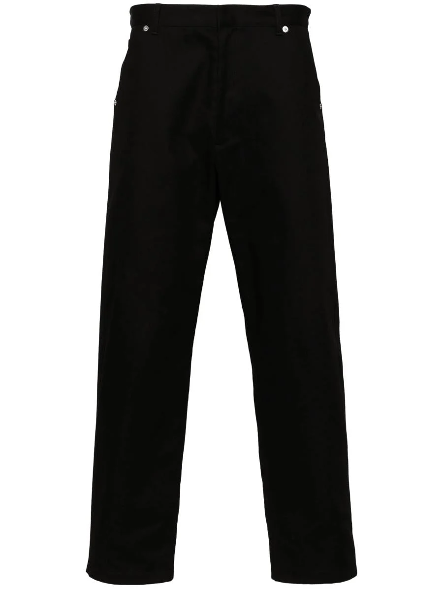 Highlights black cotton twill weave enamel triangle logo belt loops concealed front button, hook and zip fastening tapered leg two side inset pockets rear jetted pocket straight hem   Composition Cotton 100% Gender: Men Material: 100%COTTON Color: Black Made in: Imported Product ID: SPH313S23211BZ F0002 NERO *Import tax/duty will be calculated at checkout (If applicable)