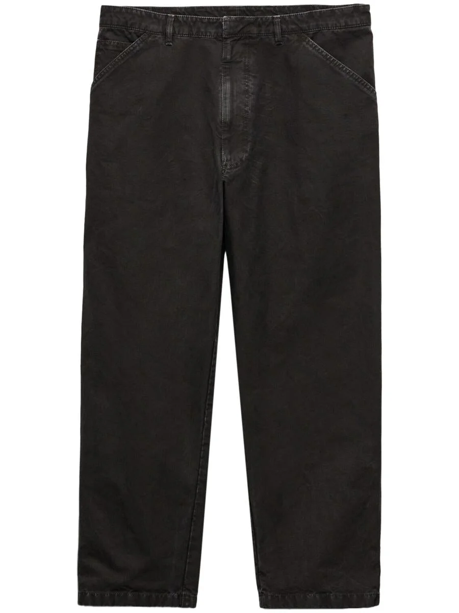 Highlights black cotton denim concealed front fastening belt loops two side slit pockets watch pocket triangle logo rear flap pocket rear patch pocket cropped wide leg   Composition Cotton 100% Gender: Men Material: 100%COTTON-100%PELLE CAPRA HIRCUS Color: Black Made in: Imported Product ID: SPH448SOOO16A7 F0002 NERO *Import tax/duty will be calculated at checkout (If applicable)