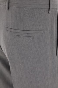 Prada's pants crafted in grey wool and mohair with fabric Triangle logo patch at back. Featuring drawstring at waist, hook-and-eye / button / zip closure, belt loops, multiple pockets and pressed crease along centre. Unlined interior. Gender: Men Material: 37%MOHAIR 63%VIRGIN WOOL Color: GREY Made in: IT Product ID: SPH299S23113C6F0031 *Import tax/duty will be calculated at checkout (If applicable)