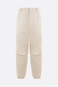 Prada's loose-fit pants crafted in natural-colored chevron cotton. Featuring hook / button / zip closure, belt loops, multiple pockets, pleated knees and elasticated hem. The design is completed by the iconic Triangle logo patch at back pocket. Gender: Men Material: 100%COTTON Color: Beige Made in: IT Product ID: SPH381SOOO14B5F0018 *Import tax/duty will be calculated at checkout (If applicable)