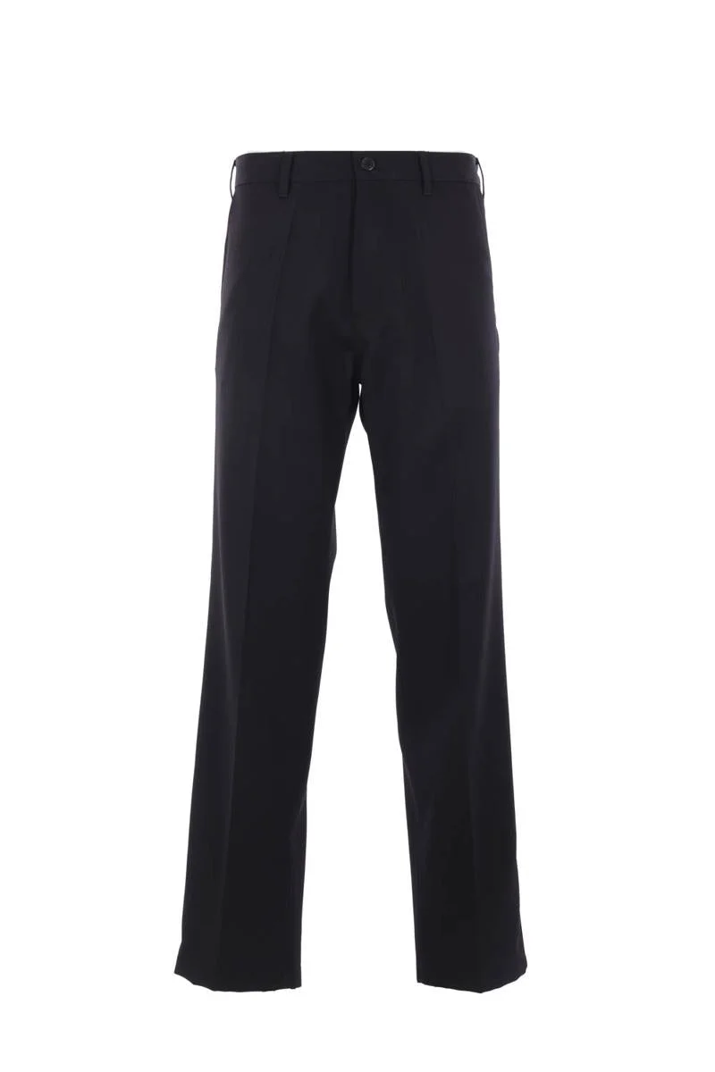 Prada straight-leg trousers crafted from black wool gabardine with an enameled metal triangle logo applied to the back pocket. Featuring a front button and zip closure, belt loops, multiple pockets, and central pleats. Unlined interior. Gender: Men Material: 100%VIRGIN WOOL Color: Black Made in: Italy Product ID: UP0371SOOO155EF0002 *Import tax/duty will be calculated at checkout (If applicable)