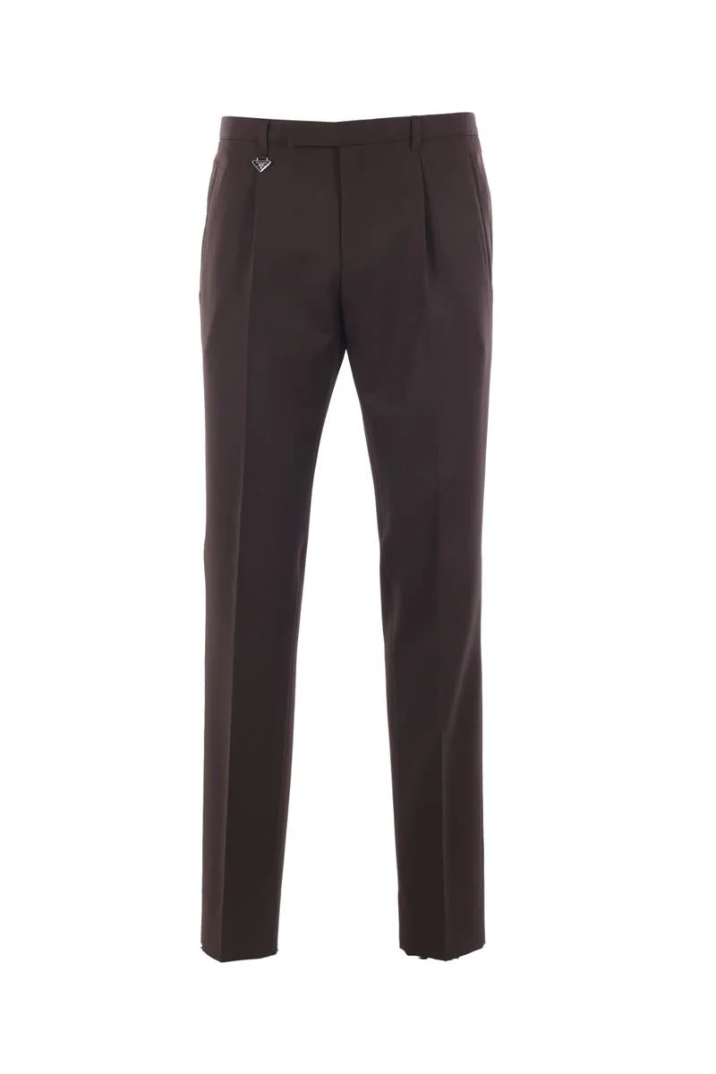 Prada trousers crafted from dark brown wool gabardine. Featuring a front hook-and-zip closure, belt loops, multiple pockets, front pleats, a central crease, and a partially lined interior. The design is completed with the enameled metal triangle logo on the front belt loop. Gender: Men Material: 100%VIRGIN WOOL Color: EBONY Made in: Italy Product ID: UP0374SAEO155EF0192 *Import tax/duty will be calculated at checkout (If applicable)