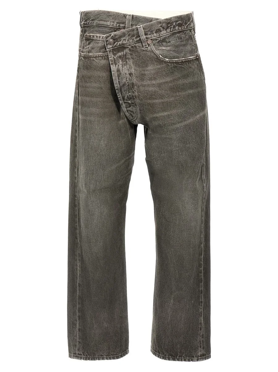 'Cross Over' cotton denim jeans with asymmetric button closure, five pockets, leather logo tag Gender: Women Material: 100% COTTON Color: GRAY Made in: IT Product ID: R13W2048D268AMUDGREY *Import tax/duty will be calculated at checkout (If applicable)