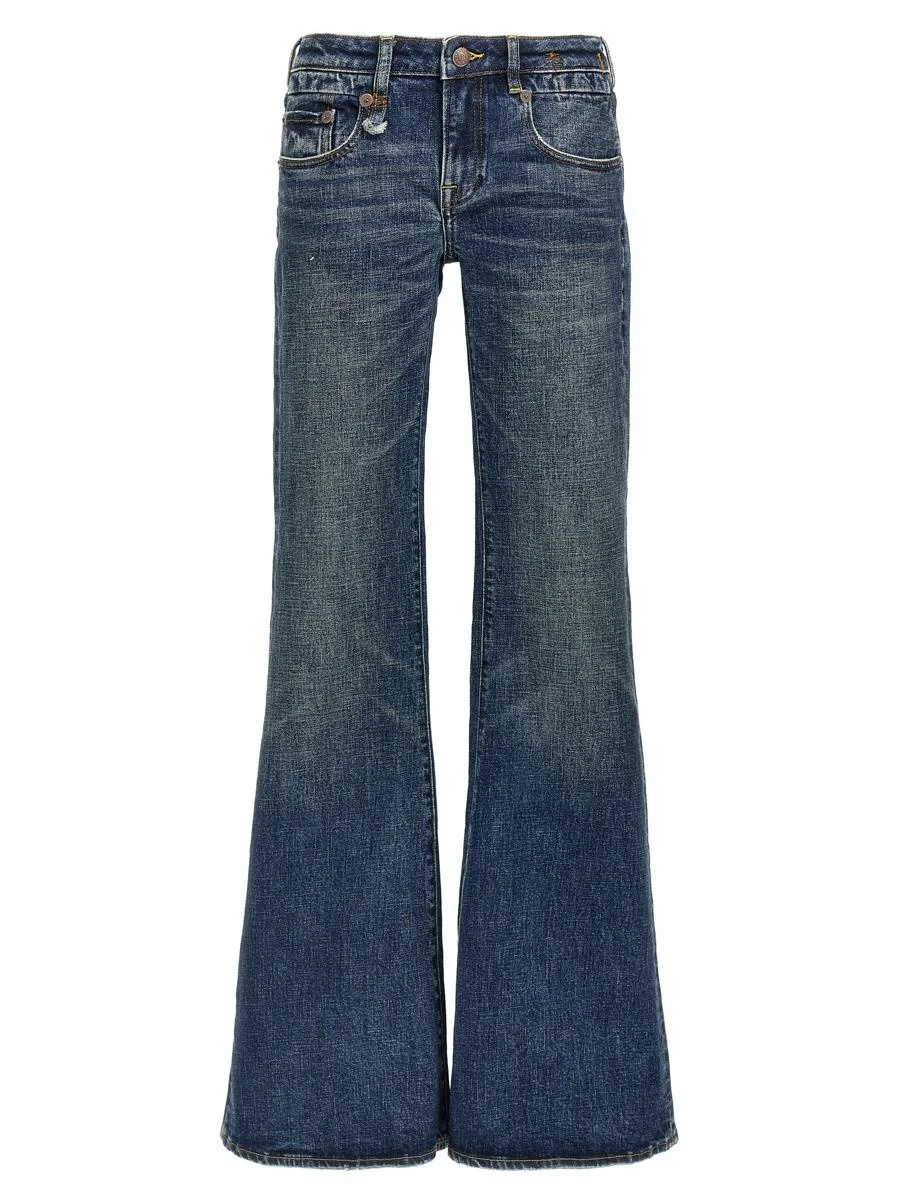 'Overflow Boy Flare' low-rise denim jeans in delave cotton with flared leg, five pockets, zip and button closure, back logo tag Gender: Women Material: 100% COTTON Color: BLUE Made in: IMPORTED Product ID: R13WD142D275AMIREBLUESTRETCH *Import tax/duty will be calculated at checkout (If applicable)