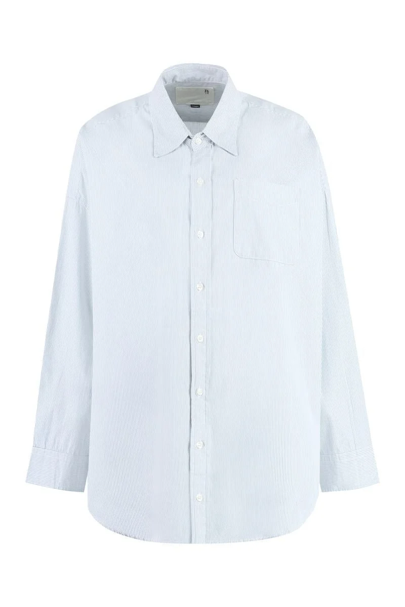 oversize striped shirt Front pocket Rounded hem 100% Cotton Gender: Women Material: COTTON Color: BLUE Made in: IMPORTED Product ID: R13W7469302_43WP *Import tax/duty will be calculated at checkout (If applicable)