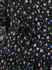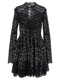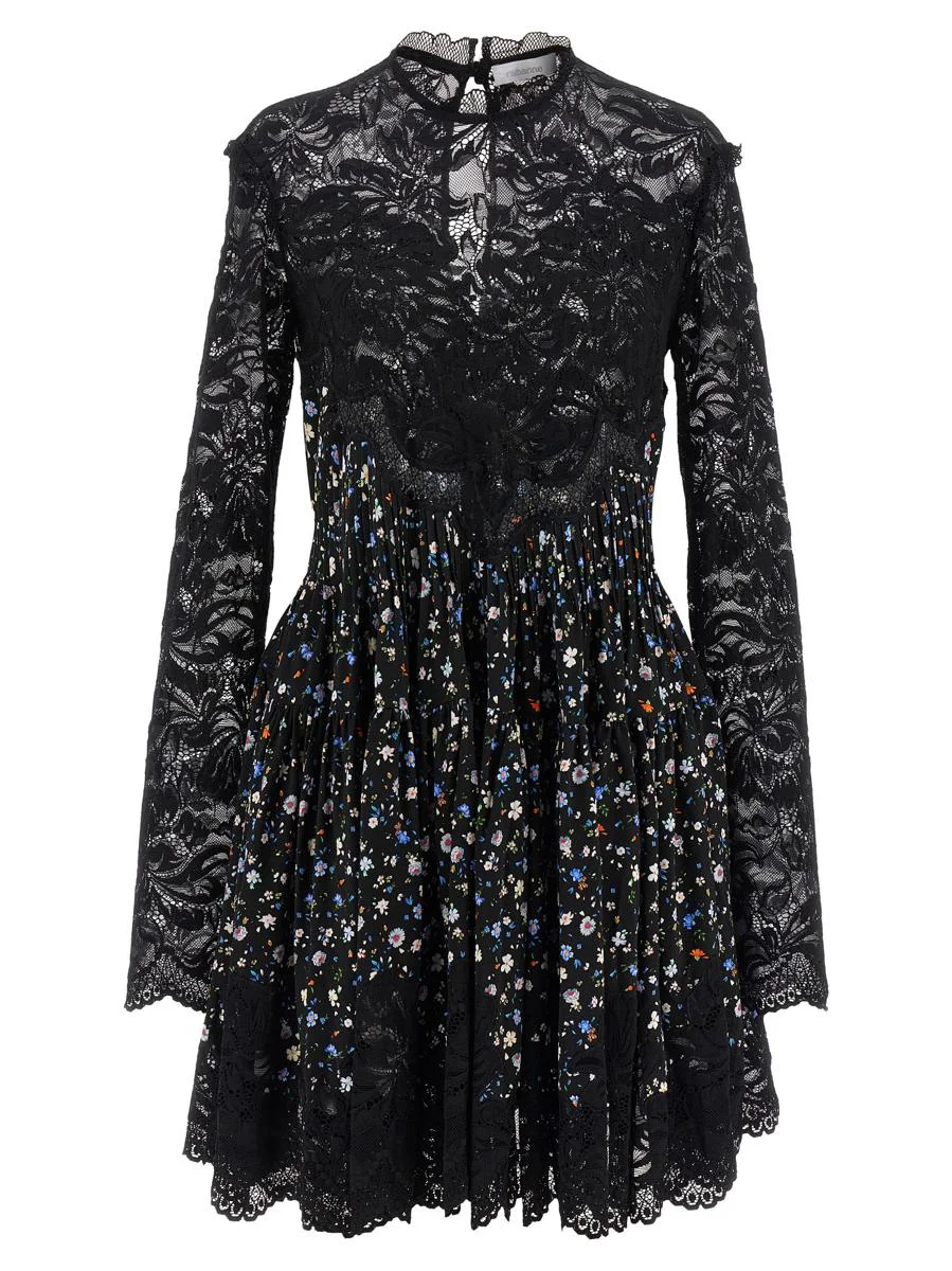 Mini dress in floral print and semi-transparent lace fabric, crew neck, back button closure with cut-out teardrop detail, long sleeves, flounced skirt with front pleated and belt Gender: Women Material: 90% VIRGIN WOOL 10% CASHMERE Color: Black Made in: Imported Product ID: 25AJRO137PA0170P001 *Import tax/duty will be calculated at checkout (If applicable)