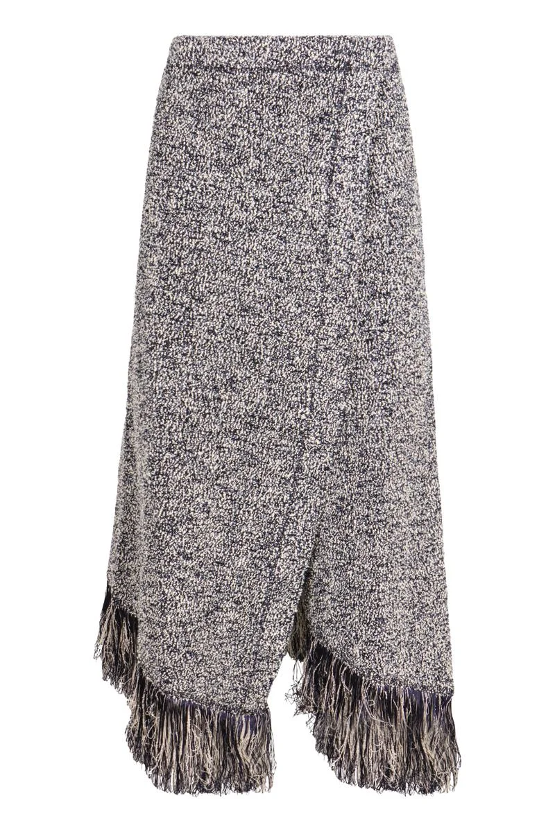 Fringed Bouclé Midi Skirt multi