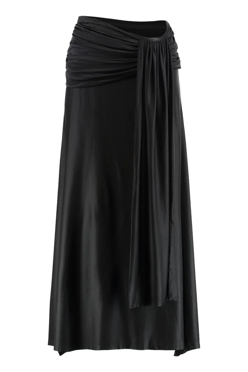 Satin skirt Asymmetric hem 90% Viscose, 10% Elastane Gender: Women Material: VISCOSE Color: Black Made in: Imported Product ID: 24EJJU555VI0267_P001 *Import tax/duty will be calculated at checkout (If applicable)