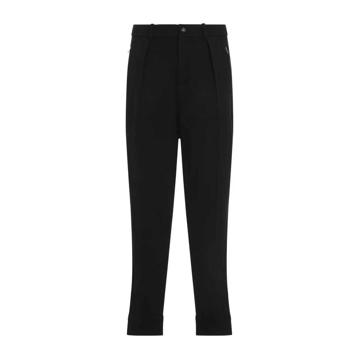 Ralph Lauren Purple Label Pintuck Black Wool Jogger Pants. Crafted from black wool, belt loops, front button and fly-zip closure, central pressed creased, two zipper side pockets, flap pockets on the back, straight leg. Gender: Men Color: Black Made in: IMPORTED Product ID: 790952504002_ *Import tax/duty will be calculated at checkout (If applicable)