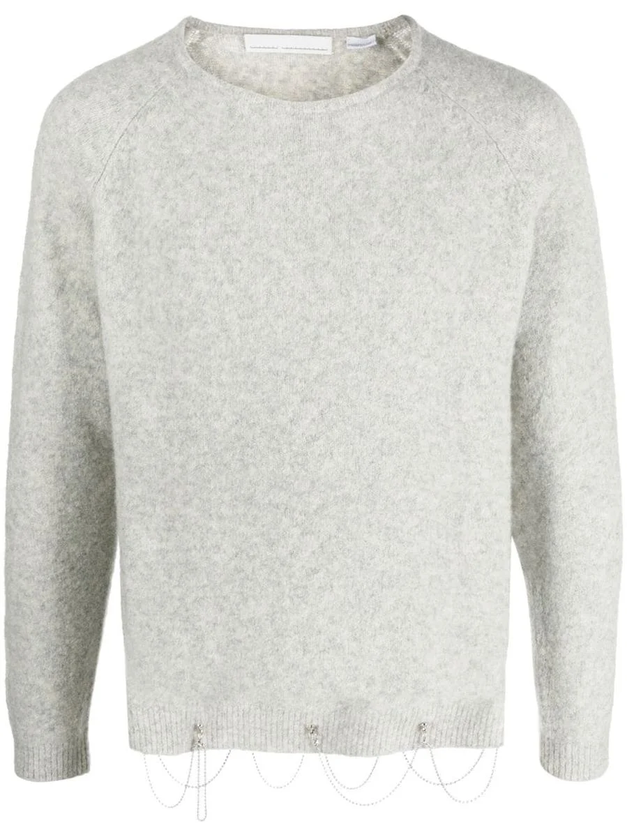 Crew neck with chain Gender: Men Material: COMPOSITION: 58% WOOL 22% NYLON 13% ACRYLIC 7% YAK Color: GREY Made in: IMPORTED Product ID: KN2622FBW00006_48040_10080 LIGHT GREY *Import tax/duty will be calculated at checkout (If applicable)