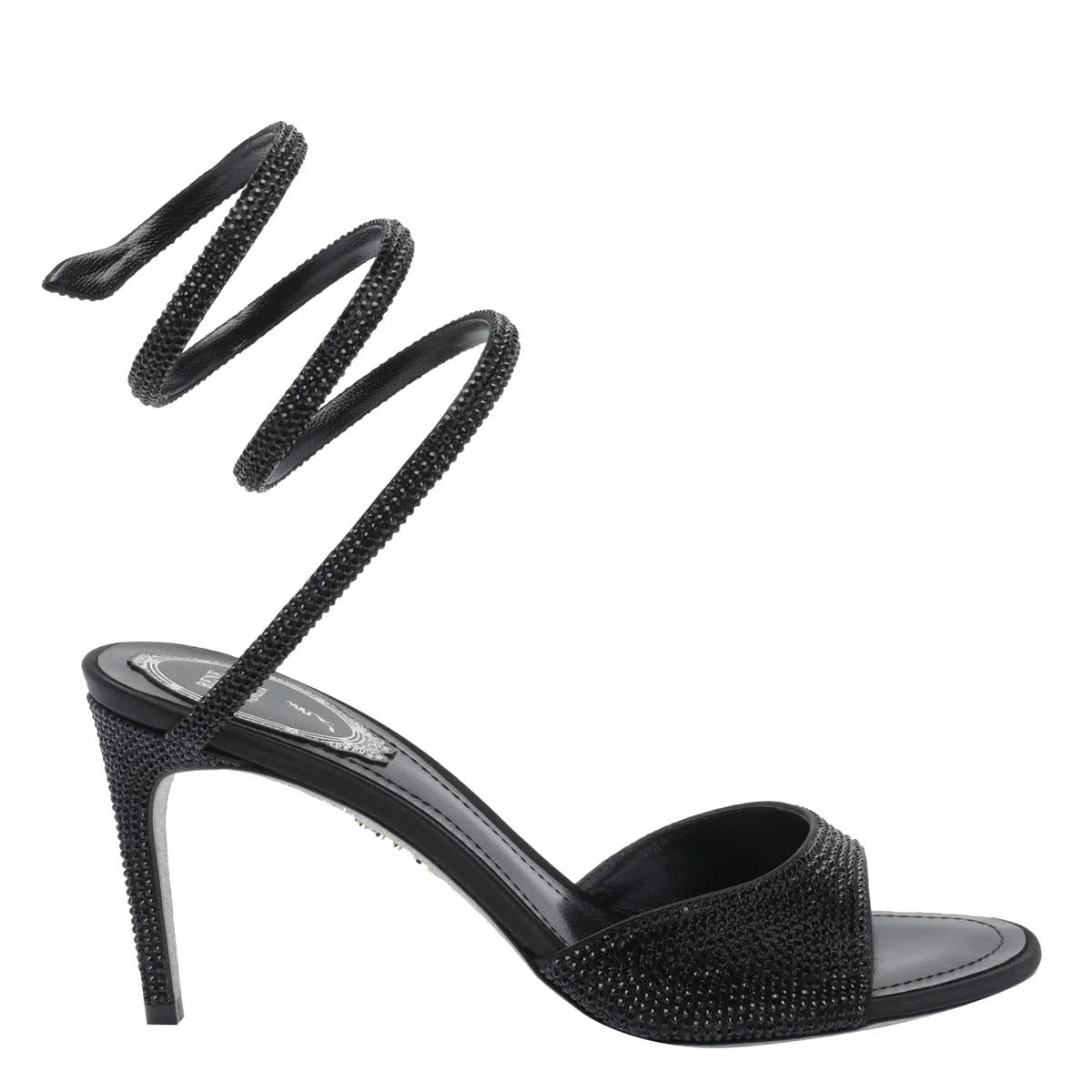 Rene Caovilla Heeled Sandals, Open Toe, Crystal Detail, Crystal Upper, Leather Sole, heel 10 cm Gender: Women Material: 100% CALF LEATHER AND CRYSTAL STRASS/LEATHER SOLE Color: Black Made in: Italy Product ID: C12608080R001V050 *Import tax/duty will be calculated at checkout (If applicable)