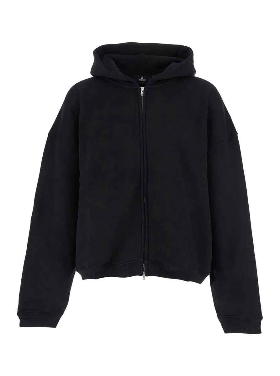 Represent Black Sweatshirt With Logo Embroidery On The Hood And Dropped Shoulders In Cotton Man