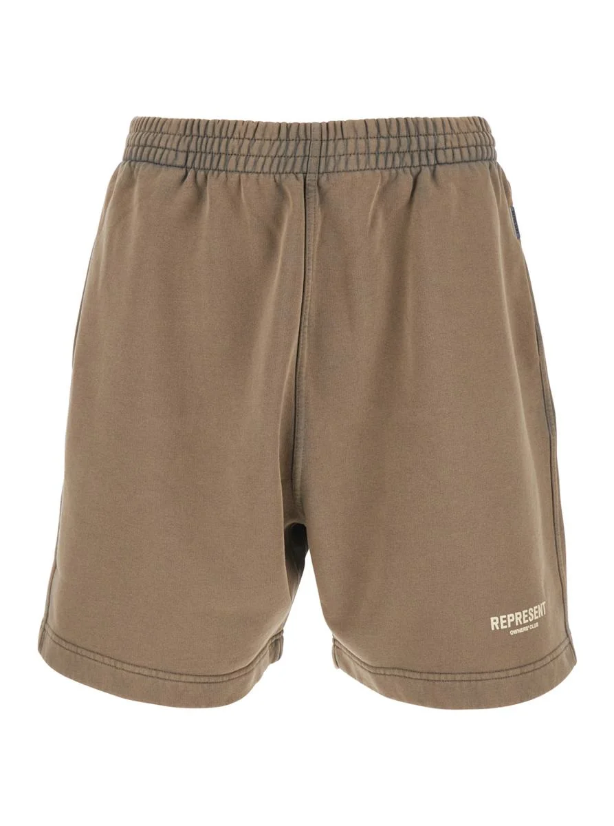 Represent Brown Shorts With Elasticated Waist And Logo Lettering On The Front In Cotton Man