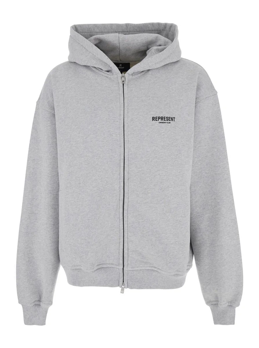 Represent Grey Zip-Up Sweatshirt With Logo On The Front And Back In Cotton Man