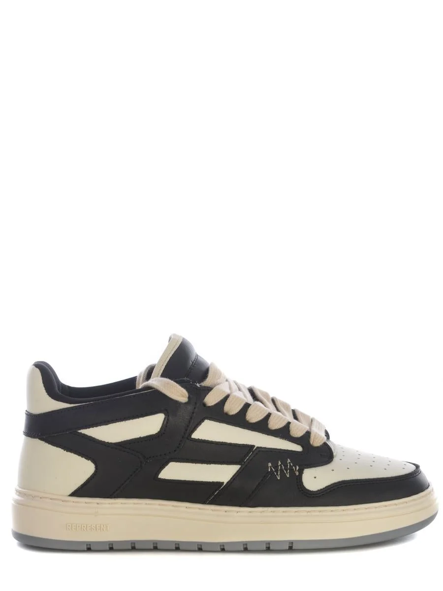 Sneakers Represent made of Cream colored leather. Design a contrasting block Black. Breathable round toe. Laced. Cream contrasting lace. Tone-on-tone "Represent" logo lettering on the rubber. Rubber sole, Cream colour. Gray contrasting tread. Gender: Men Material: LEATHER Color: Beige Made in: PT Product ID: M12043-037BLACK-VINTAGE WHITE *Import tax/duty will be calculated at checkout (If applicable)