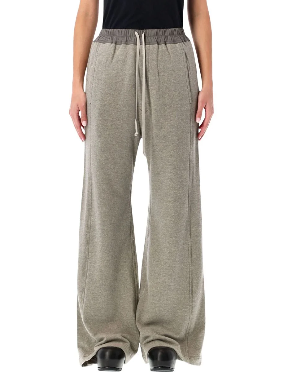 Crafted in soft grey melange jersey, these FW25 Rick Owens DRKSHDW Pusher Pants offer relaxed streetwear with elevated design. Their floor-length, wide-leg silhouette and slightly dropped crotch define comfort with edge. The visible snap closures along the side seams allow for styling versatility, while the elasticated waistband and functional pockets enhance everyday wearability. Wide-leg pants in grey melange Floor-length and low crotch Side snap-button closures Elastic waistband with drawstring Side jet pockets Square back pockets with flaps Heavyweight cotton-poly jersey Soft-touch finish Alessandra is 1,75 m and wears size S Gender: Women Material: 84% COTTON 16% POLYESTER Color: DIRTY PEARL Made in: Italy Product ID: 25ADS02E7336FGM#178 *Import tax/duty will be calculated at checkout (If applicable)