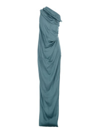 Rick Owens 'Athena Arrowhead' Light Blue Long Dress With One Shoulder Design And Side Slits In Visco