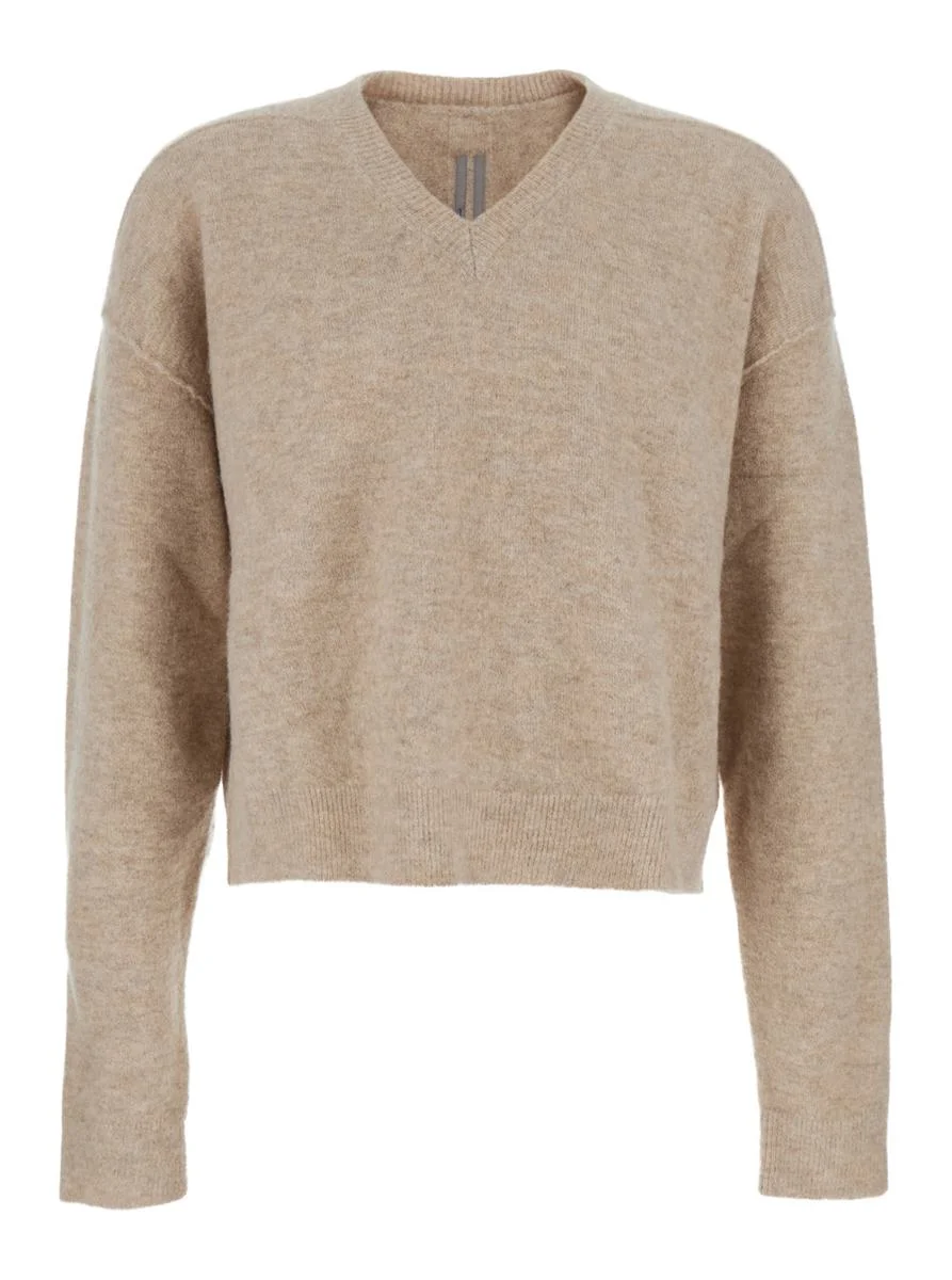 Rick Owens Beige Sweater With V Neck And Dropped Shoulders In Wool Blend Man