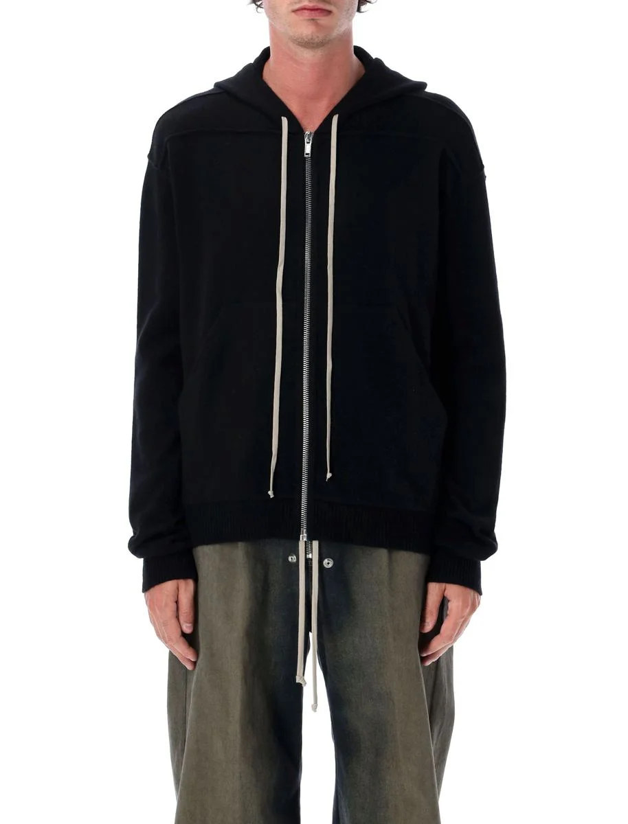 Cashmere zipped hoodie by Rick Owens. Featuring: Cashmere wool knit Front zip closure Hood with drawstring Long sleeves Ribbed cuffs and hem Signature level seam Front patch pocket Single seam at centre back Andrea is 1,90 m and wears size L Gender: Men Material: 97% CAHMERE 3% WOOL Color: Black Made in: Italy Product ID: 25ARU02E1614WSBR#09 *Import tax/duty will be calculated at checkout (If applicable)