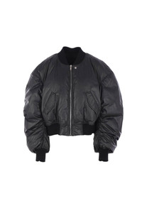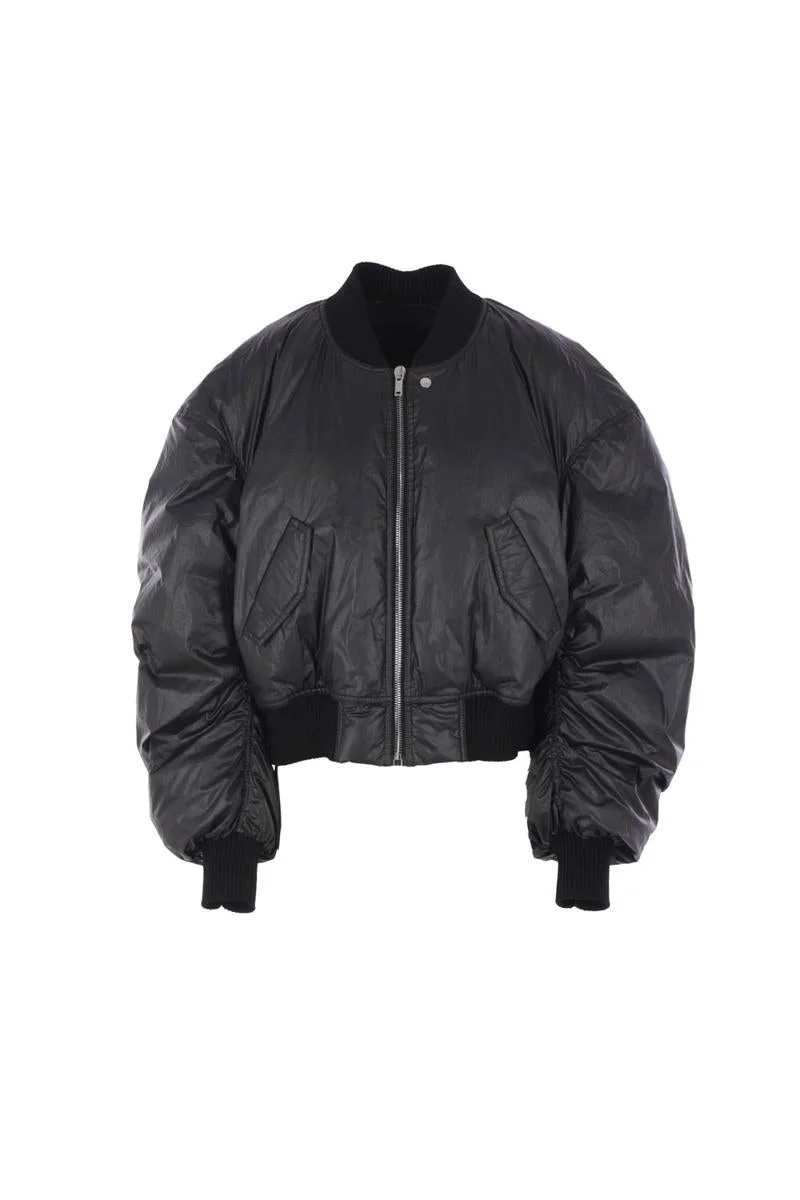 Rick Owens oversized down jacket made from black coated cotton. Features a bomber collar, front zip closure, flap pockets, long sleeves with ruched seams, and ribbed knit trims. Gender: Women Material: 93% COTTON + 7% POLYURETHANE KNIT RIB COLLAR, WRIST BAND AND BOTTOM 94% NEW WOOL + 5% NYLON + 1% ELASTANE BODY AND POCKETS LINING 10 Color: Black Made in: Italy Product ID: RO02E4794PCTDX09 *Import tax/duty will be calculated at checkout (If applicable)