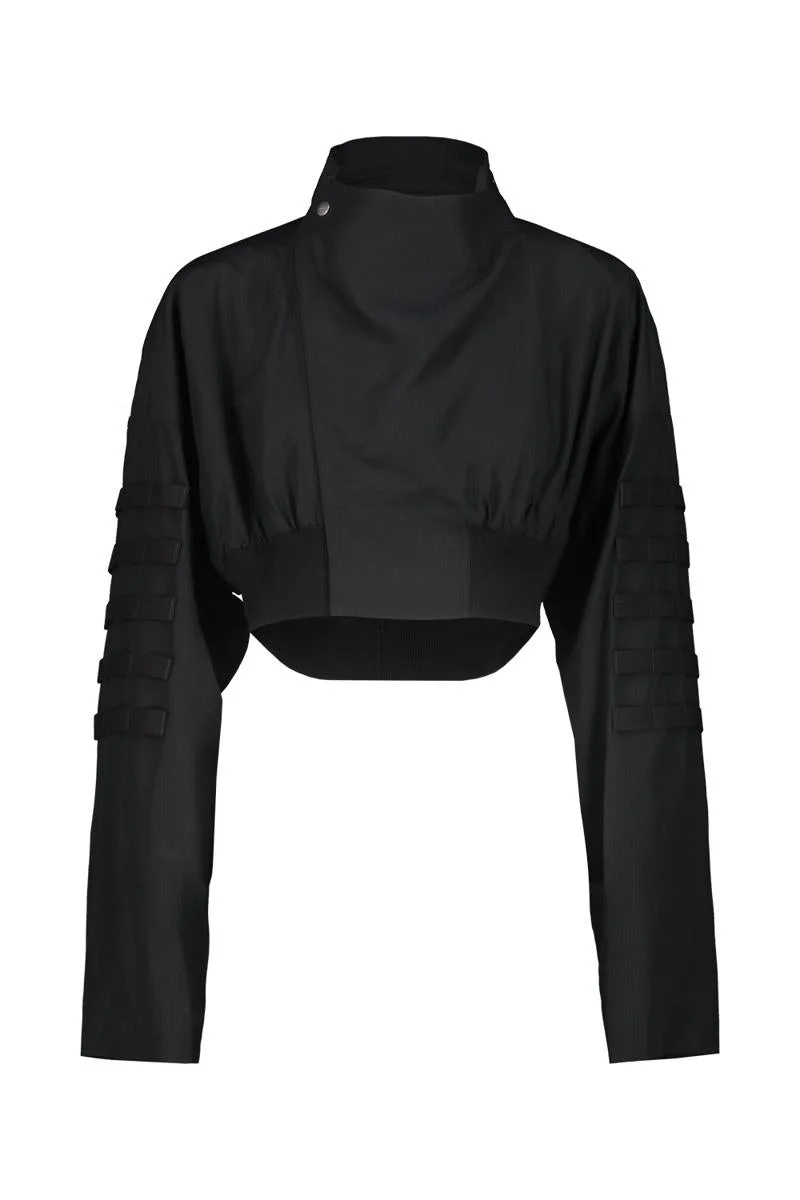 Rick Owens Hollywood Anthem flight jacket in technical fabric whit water repellent finish, waist length , kimono sleeves, double snap flap and pocket across the back, five rows of webbing straps on the arms. Gender: Women Material: LYOCELL | 100% LYOCELL / HEM CUFFS 100% VIRGIN WOOL Color: Black Made in: IT Product ID: RO01E7786 NREH5 *Import tax/duty will be calculated at checkout (If applicable)