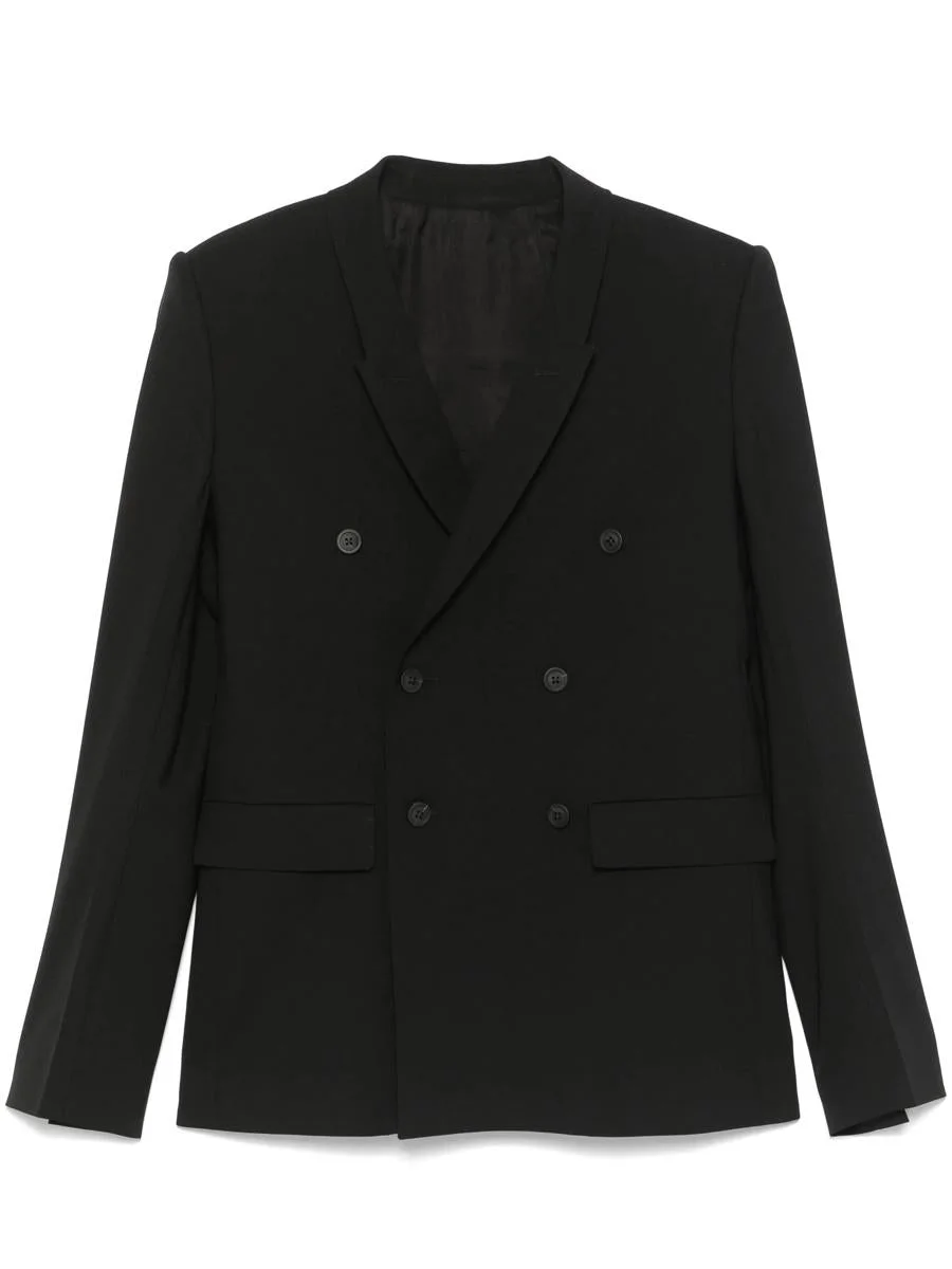 Highlights black double-breasted button fastening two front flap pockets buttoned cuffs English rear vents   Made in Italy.   Composition Lining: Cotton 100%, Cupro 100% Outer: Buffalo Horn 100%, RWS Virgin Wool 96%, Elastane 4%  Gender: Men Material: . 90% NYLON + 10% ELASTANE Color: Black Made in: Imported Product ID: RU01E5732ZL 09 BLACK *Import tax/duty will be calculated at checkout (If applicable)