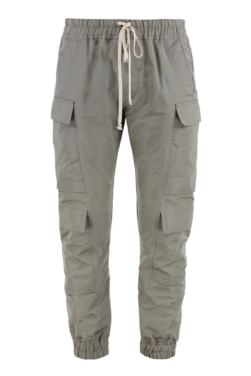 Nylon cargo pants Two side pockets Two buttoned flap pockets at legs Two back buttoned flap pockets Elasticated ankle cuffs 100% Polyester Gender: Men Material: POLYESTER Color: GREY Made in: Italy Product ID: RU01D3337FK_34 *Import tax/duty will be calculated at checkout (If applicable)