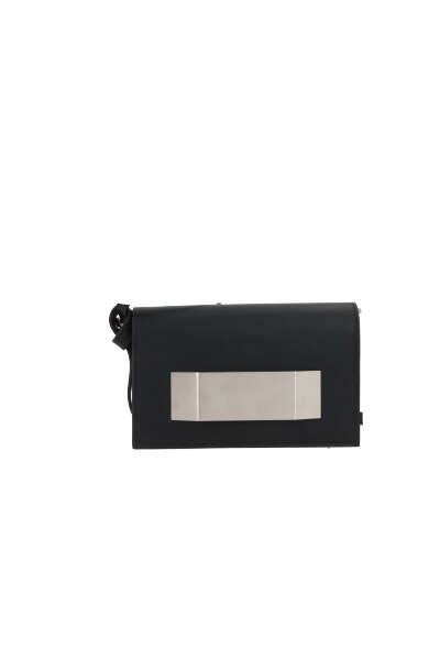 Rick Owens' crossbody bag crafted in black smooth leather. It features silver-tone hardware, magnetic button closure on flap and adjustable / removable strap. Black leather-lined interior with slip pocket and card slot. The design is completed by front metal detail with logo engraving. Gender: Women Material: 100% COW LEATHER Color: Black Made in: IT Product ID: RA02D0522LGE09 *Import tax/duty will be calculated at checkout (If applicable)