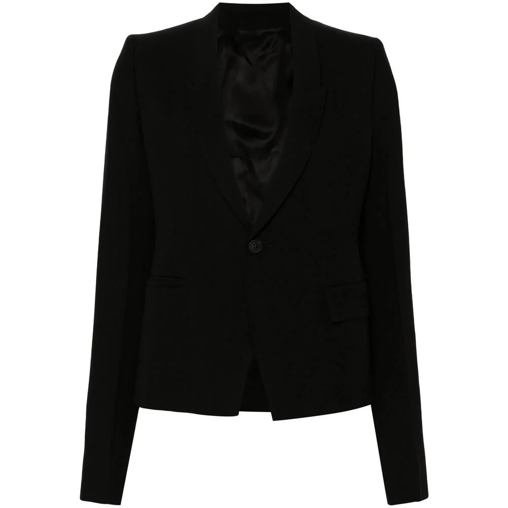 Black virgin wool grain de poudre peak lapels shoulder pads long sleeves buttoned cuffs two side flap pockets american rear vent internal jetted pockets full lining front button fastening Gender: Women Material: LINING COMPOSITION COTTON: 100.0%, LINING COMPOSITION CUPRO: 100.0%, OUTER COMPOSITION VIRGIN WOOL: 100.0%, OUTER COMPOSITION BUFFALO HORN: 100.0% Color: Black Made in: IT Product ID: RP02D3764 WGP 09 *Import tax/duty will be calculated at checkout (If applicable)