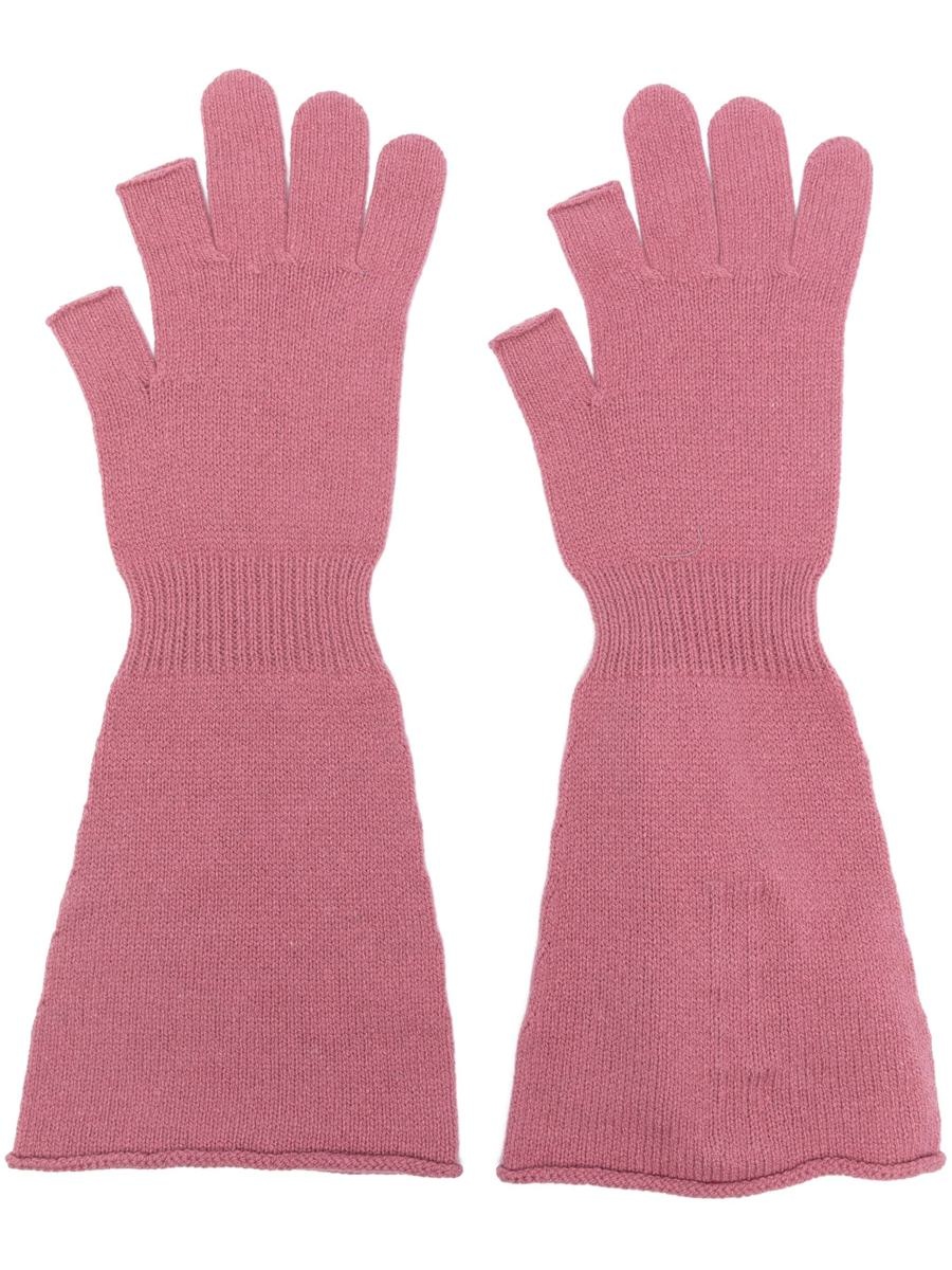 Highlights rose pink organic cashmere-organic wool blend knitted construction elbow length ribbed cuffs thumb and index slots full-finger design This item is made from at least 50% organic materials. This item contains at least 50% materials which are certified or widely recognised as having a lower environmental impact through production and/or manufacturing processes that reduce water consumption and the use of harmful chemicals, or re-use by-products of the production process.   Made in Italy.   Composition Organic Cashmere 97%, Organic Wool 3%  Gender: Women Material: . 97% CASHMERE + 3% WOOL Color: THULIAN Made in: Imported Product ID: RO02D3489WSBR 23 THULIAN *Import tax/duty will be calculated at checkout (If applicable)