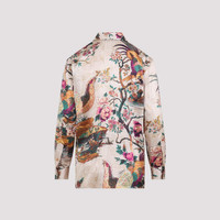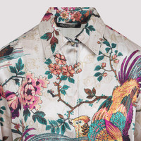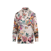Roberto Cavalli Beige Silk Shirt. Pure silk shirt, pointed collar, front concealing buttoned fastening, long sleeves, buttoned cuffs, straight hem. Beige background, multicolor flower and birds design all-over. Gender: Women Material: 100%SILK Color: Beige Made in: Italy Product ID: VKT704.TYP76_1412 *Import tax/duty will be calculated at checkout (If applicable)