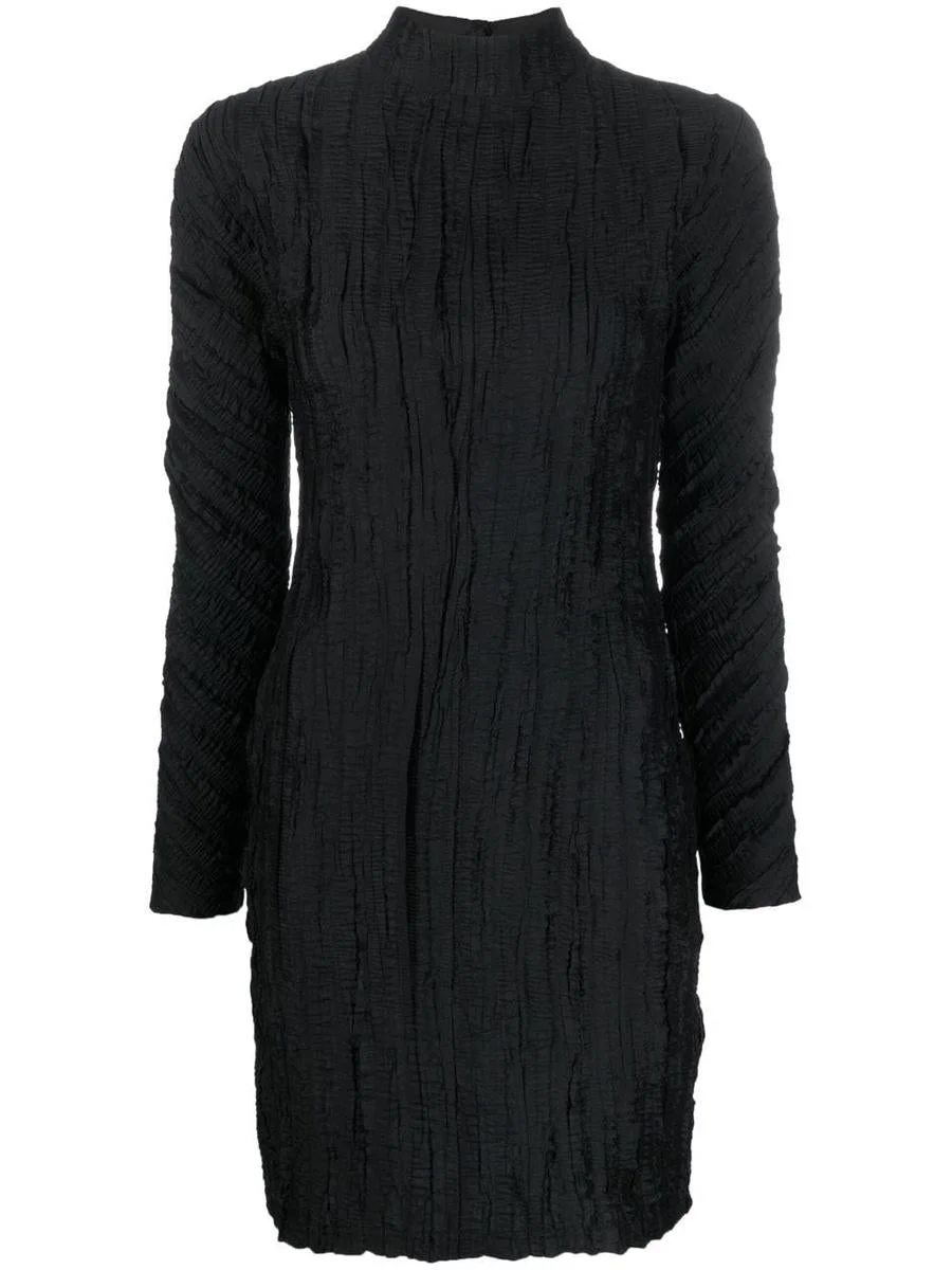 crease-effect mock neck dress
