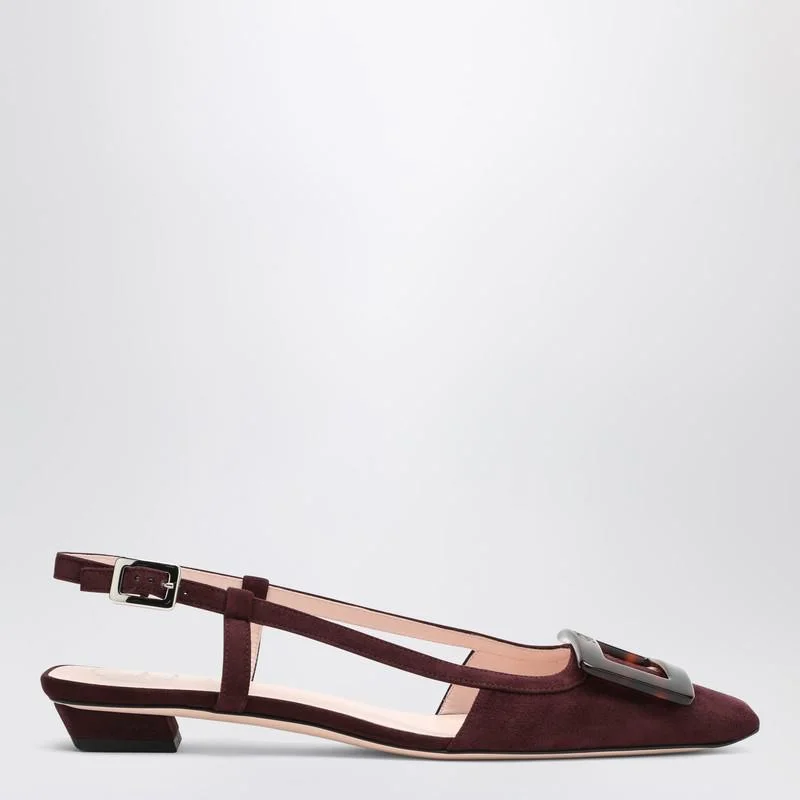 Roger Vivier Belle Vivier Bordeaux Suede Slingback Flats