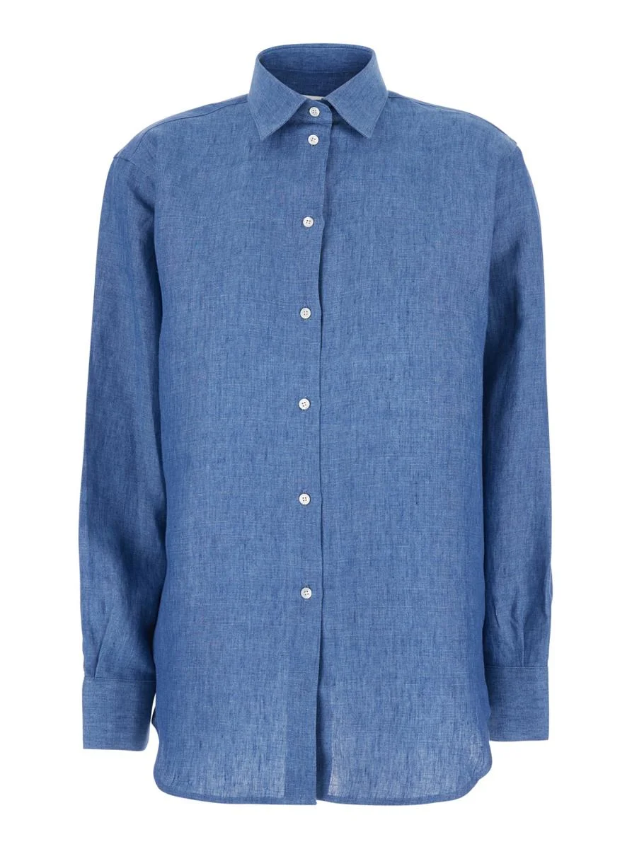 Rohe Blue Shirt With Classic Collar And Button Closure In Linen Woman
