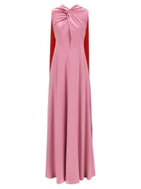 Long 'Amanita' silk dress with cape and contrast lining. Sleeveless model with knot detail on the chest Gender: Women Material: 100% SILK Color: PINK Made in: IMPORTED Product ID: H2224A1BLUSHPINKTANGERINE *Import tax/duty will be calculated at checkout (If applicable)