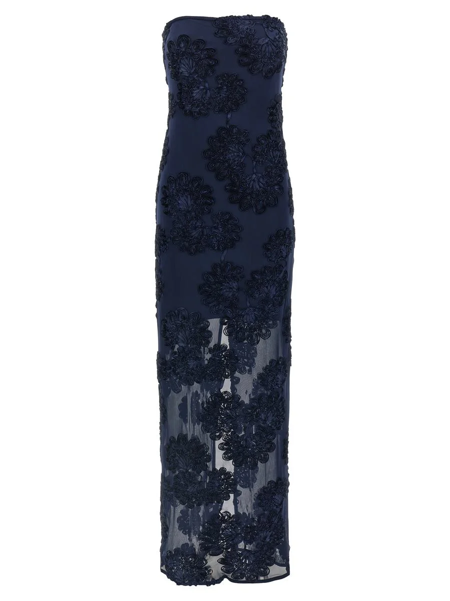 3D Mesh Maxi' semi-transparent mesh dress with all-over 3D floral appliques, sleeveless off-the-shoulder style, inner band bra with back hook closure, lining, zip closure and back split. SUSTAINABLE: Product made from recycled polyester Gender: Women Material: 95% POLYESTER, 5% ELASTANE Color: BLUE Made in: Imported Product ID: 114216340340 *Import tax/duty will be calculated at checkout (If applicable)