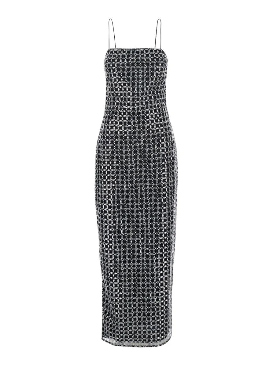 Rotate Birger Christensen Black Long Dress With Thin Straps And Beaded Decorations In Fabric Woman