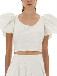 Rotate Birger Christensen Cotton Top With Puff Sleeves