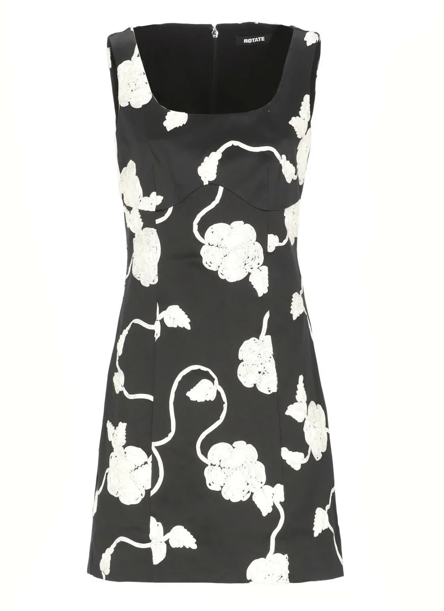 - Black Rotatedress for woman - Crew neck - Sleeveless - Rear zip fatening - All-over roses details Model's height is 179 cm and she wears a size 36 Gender: Women Material: 100% POLIYESTER LINING: 97% VISCOSE 3% ELASTANE Color: Black Made in: Imported Product ID: 1145930001000 BLACK COMB. *Import tax/duty will be calculated at checkout (If applicable)