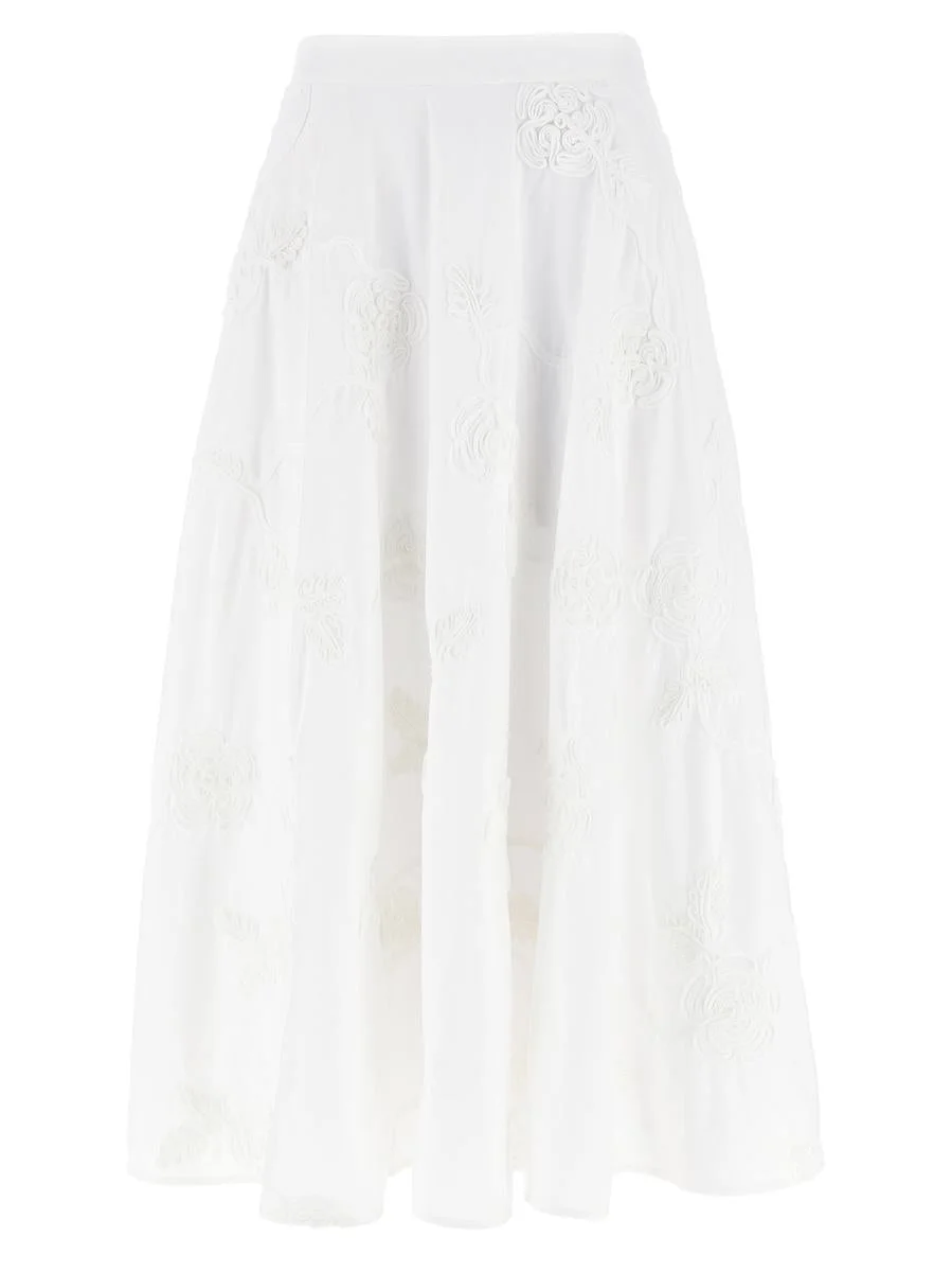 Flower Maxi' high waist midi skirt in cotton with all-over floral tonal embroidery, pockets, side zip closure, and underskirt. SUSTAINABLE: This product is made of organic cotton Gender: Women Material: 100% COTTON Color: WHITE Made in: Imported Product ID: 114557400400 *Import tax/duty will be calculated at checkout (If applicable)