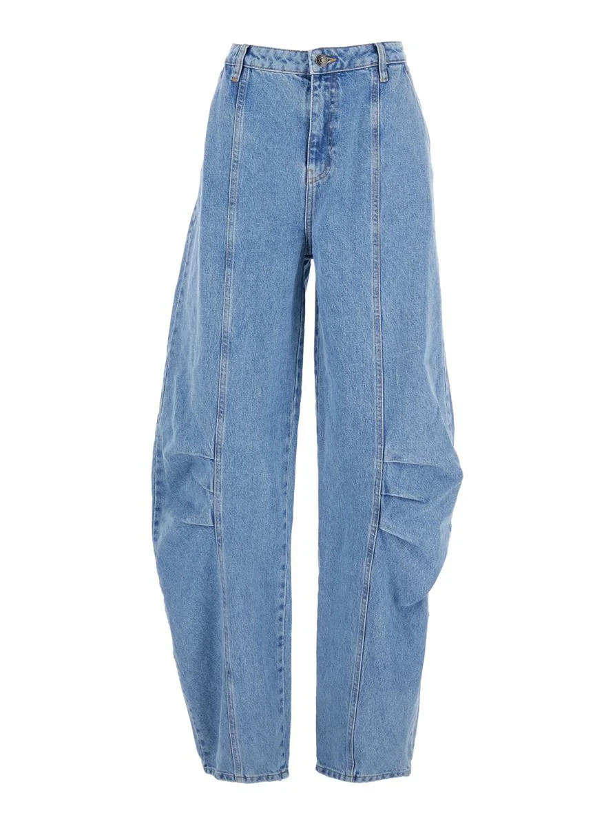Rotate Birger Christensen Light Blue Jeans With Central Stitching And Logo Patch On The Back In Deni
